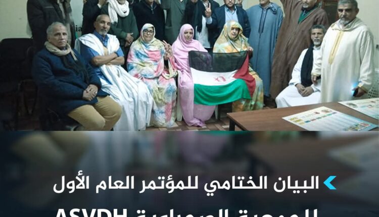 وفي الختام تحيي الجمعية الصحراوية كافة الضحايا و المناضلين و المتضامنين وكل من ساعد على انجاح هذا المؤتمرالعام الاول للجمعية التي تعتبر فضاء لكل الجمعيات الوطنية الصحراوية ذات القناعة والهدف المشترك وتؤكد دعوتها لكل الطاقات الفاعلة من اجل الدفع بالعمل الحقوقي إلى الامام وتعلن من خلال هذا البيان اسماء مكتبها التنفيذي الجديد: