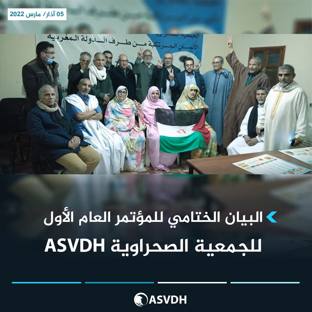 عقدت الجمعية الصحراوية لضحايا الانتهاكات الجسيمة لحقوق الانسان المرتكبة من طرف الدولة المغربية ، مؤتمرها العام الأول في الخامس من مارس 2022 ، بعد الحظر، الذي طال عمل الجمعية من طرف السلطات المغربية خلال السنتين الاخيرتين ، بمحاصرة المقر ومنع أعضائها من ولوجه وقطع التيار الكهربائي مرات عديدة، في محاولات منها لإسكات صوت الضحايا وطمس الحقيقة حول الجرائم المرتكبة طيلة عقود في حق الشعب الصحراوي.وهي تتمادى في ذلك أثناء انعقاد هذا المؤتمر، بجعل الجمعية تحت حصار اجهزة البوليس المتنوعة التي حاصرت مقرها، ومنعت المناضلين من الالتحاق به.