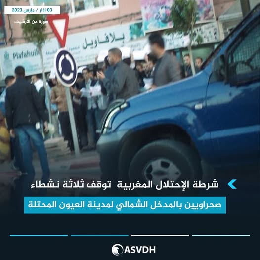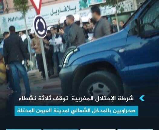 شرطة الإحتلال المغربية في هذه اللحظات توقف ثلاثة نشطاء صحراويين بالمدخل الشمالي لمدينة العيون المحتلة وهم :