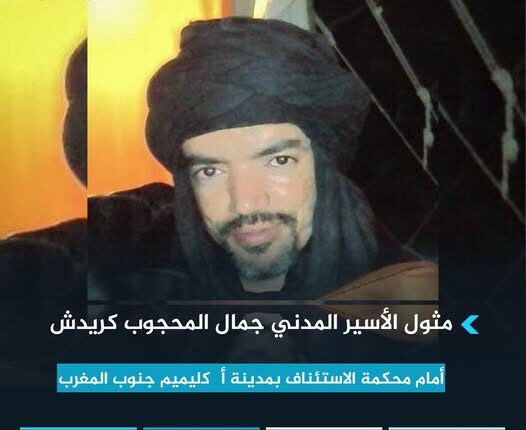 المناضل الإعلامي والحقوقي الصحراوي، رئيس المرصد الصحراوي لتوثيق انتهاكات حقوق الإنسان بالصحراء الغربية، الأسير المدني جمال المحجوب كريدش، يمثل أمام محكمة الاستئناف بمدينة أگليميم/جنوب المغرب