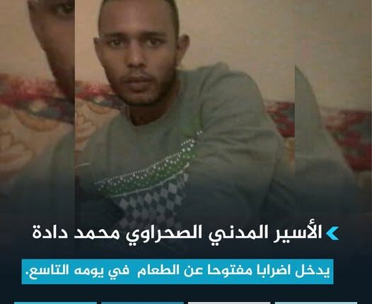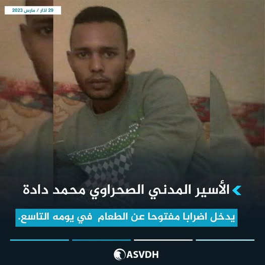 يدخل اليوم الأربعاء 29 مارس 2023 الأسير المدني الصحراوي محمد دادة المتواجد بسجن الطنطان/جنوب المغرب، في يومه التاسع من الإضراب المفتوح عن الطعام.