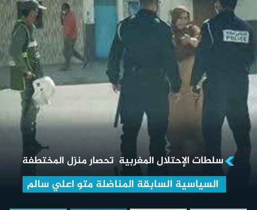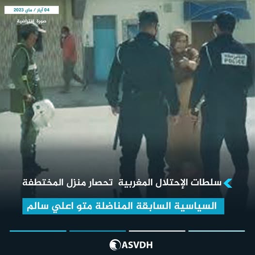 تماديا في سياسية الترهيب والحصار والقمع الذي تنتهجه في حق المدنيين الصحراويين العزل المطالبين بإستقلال الصحراء الغربية،أقدمت سلطات الإحتلال المغربية على الساعة 20:30 من مساءا امس الاربعاء 03 ماي 2023، على حصار منزل المختطفة السياسية السابقة، المناضلة متو اعلي سالم، الذي كان يحتضن لقاء تواصليا لمجموعة من المختطفات والناشطات الصحراويات واللاتي فور خروجهن من المنزل، تم إعتراض طريقهن من طرف مجموعة من الجلادين التابعين لشرطة الإحتلال، يتقدمهم الجلاد يونس فاضل الملقب بولد التوحيمة، والجلاد احمد كايا، والجلاد، محسن السرغيني، حيث تم التهجم على صاحبة المنزل متو اعلي سالم بألفاظ نابية وتهديدها على خلفية إحتضانها للإجتماع، كما تمت ملاحقة كل من المناضلات والمختطفات السابقات يهديها حيمودة والدكجة لشكر والمكبولة بشرايا وقد تعرضت هذه الأخيرة للضرب والركل.