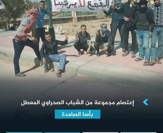 مجموعة من الشباب الصحراوي المعطل بأسا الصامدة، يواصلون إعتصامهم المفتوح أمام ما يسمى بعمالة اسا الزاك