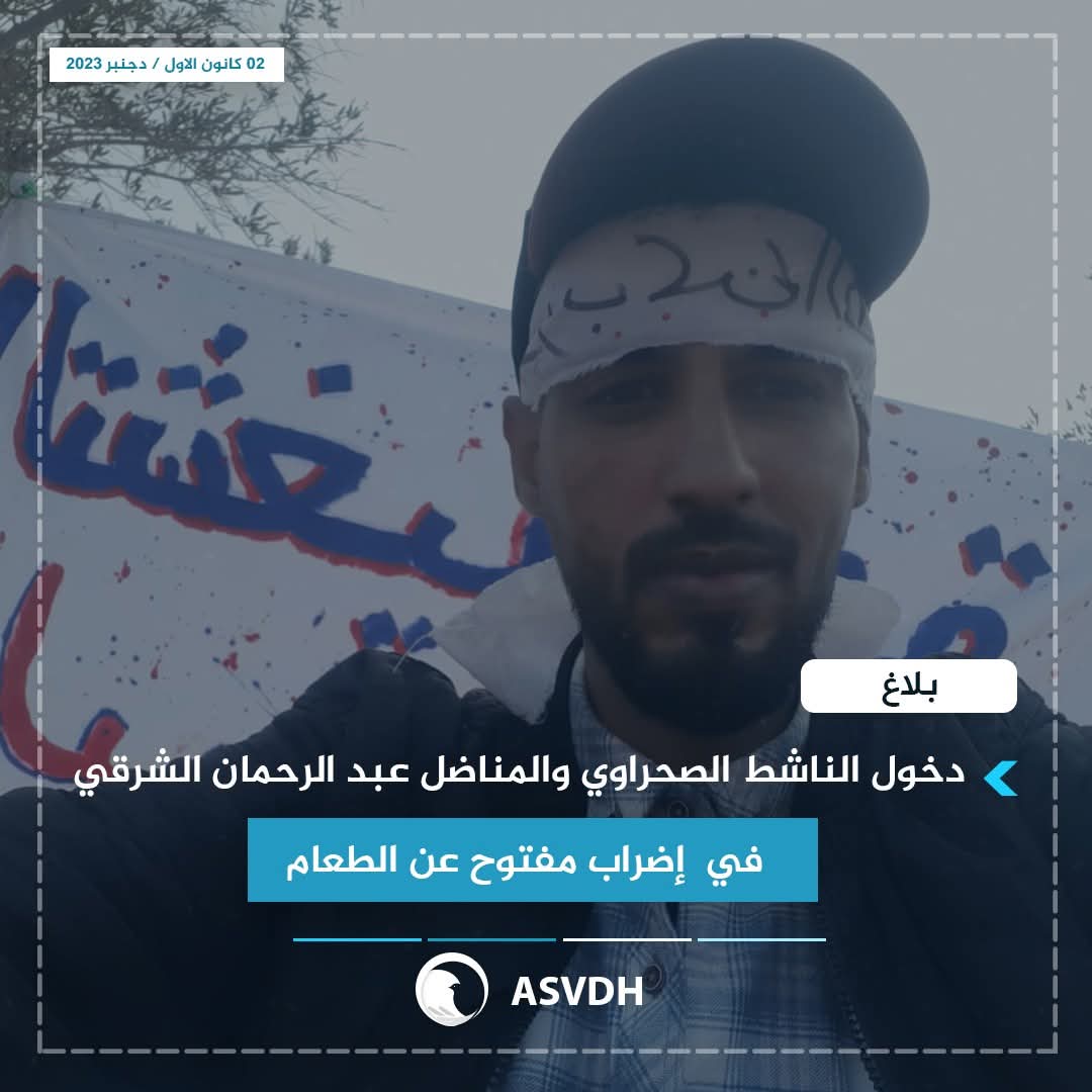 دخل يوم أمس الجمعة 01 دجنبر الناشط الصحراوي والمناضل عبد الرحمان الشرقي في إضراب مفتوح عن الطعام بالقرب من مقر عمالة مدينة آسا.