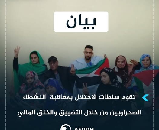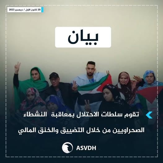 الجمعية الصحراوية تدين سياسات التضييق والخنق المالي في حق النشطاء الصحراويين بسبب تعبيرهم عن حق الشعب الصحراوي في تقرير المصير والاستقلال