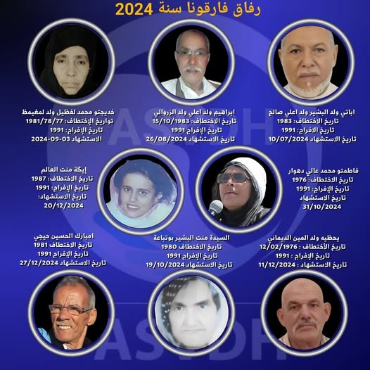 رحلت سنة 2024، ومعها نودع في الجمعية الصحراوية لضحايا الانتهاكات الجسيمة لحقوق الإنسان المرتكبة من طرف الدولة المغربية ASVDH، قافلة مهيبة من الأحبة الأعزاء، رفاق سنوات المخابئ السرية والاختطاف القسري والمعاناة والتضحية، الذي وافاهم الأجل المحتوم خلال هذه السنة، قافلة ضمت كل من المختطفات والمختطفين الصحراويين: