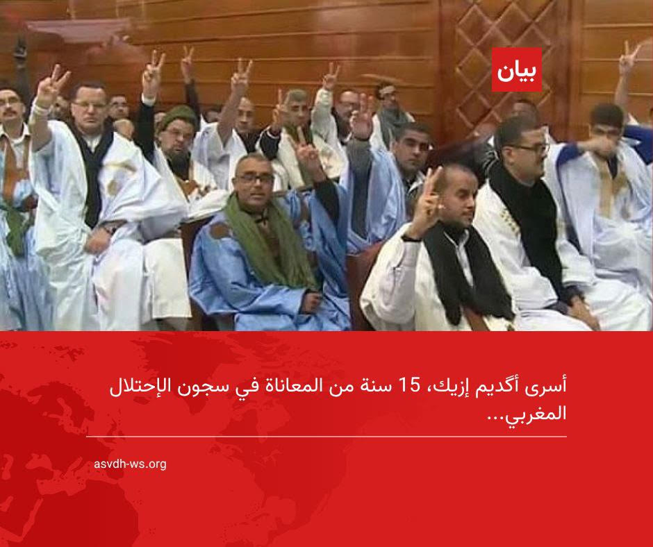 إن الجمعية الصحراوية ASVDH، إذ تتابع بقلق بالغ، الوضع المزري، الذي يعيشه رفاقنا داخل سجون الاحتلال المغربية، تؤكد على تجديد تضامنها المطلق وغير المشروط مع كافة الأسرى الصحراويين، وعلى رأسهم مجموعة أكديم إزيك، كما تطالب بما يلي: