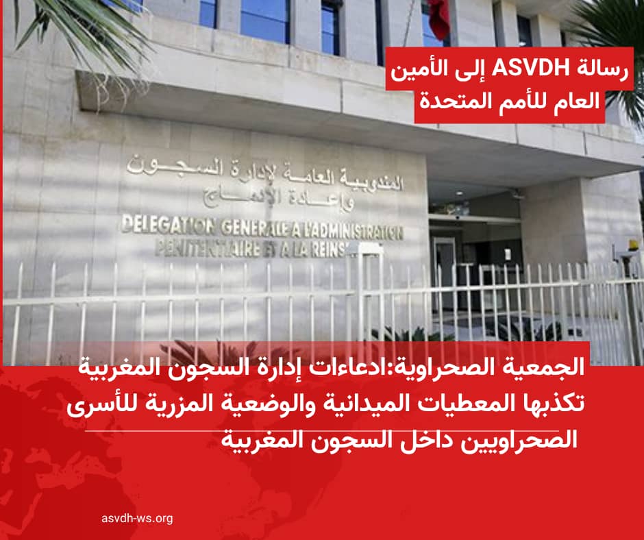 ASVDH تراسل الأمين العام للأمم المتحدة ردا على رسالة مندوب إدارة السجون المغربية بخصوص أوضاع الأسرى المدنيين الصحراويين.