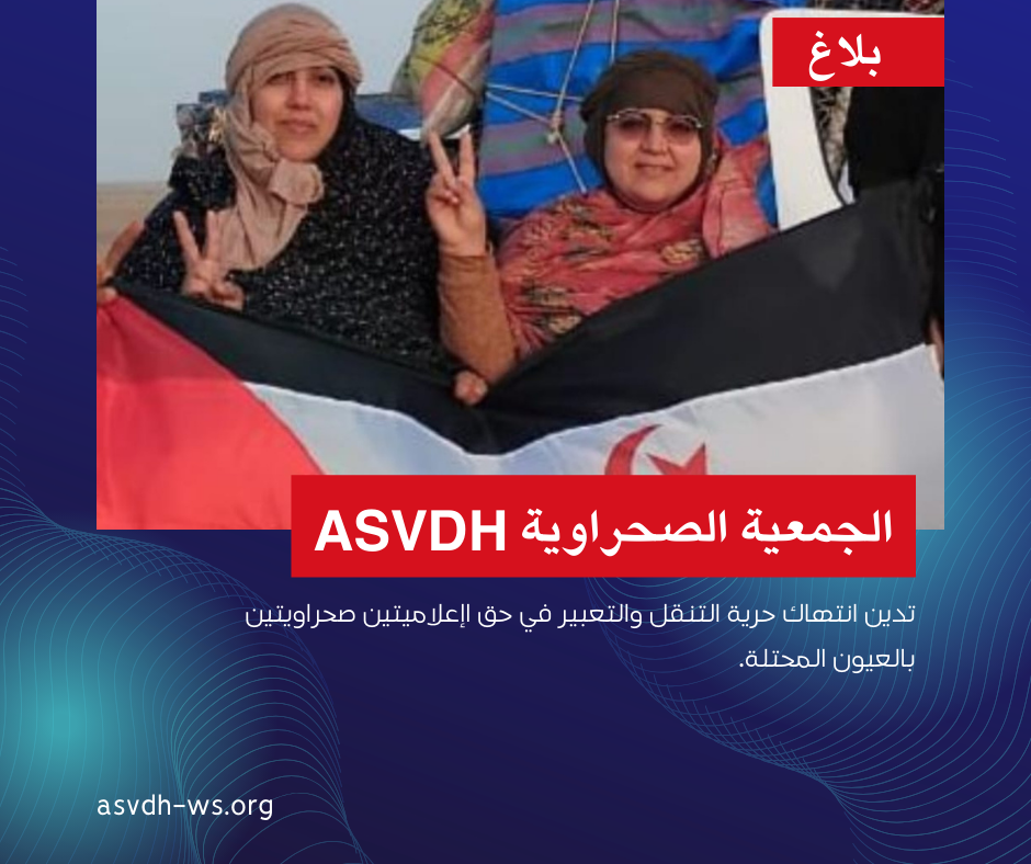 إن الجمعية وإذ تعتبر ما حدث انتهاكا صارخا لحرية التنقل وحرية الرأي والتعبير، فإنها تعلن تضامنها الكامل مع الإعلاميتين الصحراويتين ومن كان معهما، محملة سلطات الإحتلال المغربية المسؤولية الكاملة عن سلامتهم، ومطالبة بوقف كافة أشكال الاستهداف التي تطال الأصوات الإعلامية والحقوقية الصحراوية.