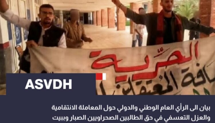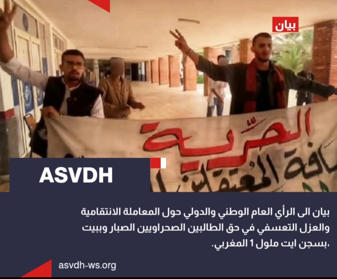 الجمعية الصحراوية ASVDH تدين سياسة العزل والمعاملة الانتقامية في حق الطالبين الصحراويين ببيت أبراهيم وصلاح الدين الصبار بسجن ايت ملول 1 المغربي.